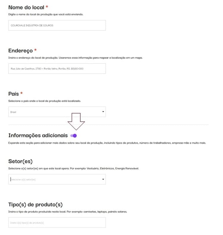 Para isso, será necessário enviar documentos simples que comprovem o endereço da fábrica e a sua relação com ela — como o site da empresa ou um perfil no LinkedIn.