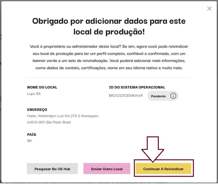 Após adicionar os dados iniciais da sua fábrica, você pode solicitar a gestão do seu perfil no OS Hub.