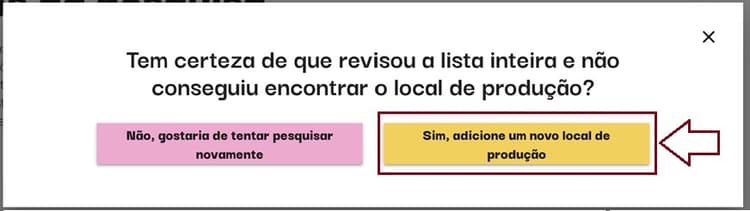 A pesquisa vai listar possíveis fábricas relacionadas, se essa for a sua fábrica clique em selecionar. Se não for, clique em não vejo minha localização.