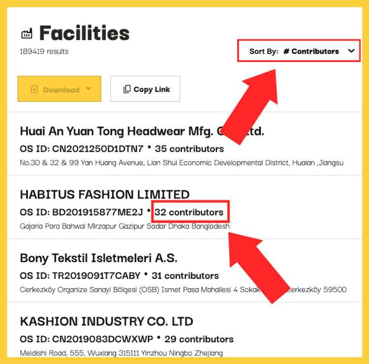 When you run a search in Open Supply Hub, the search results will now include the number of active & public contributors connected to a facility.