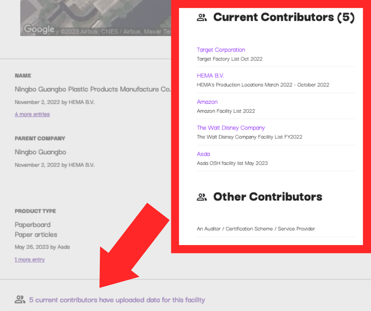 Contributors will now be separated into “Current Contributors” and “Other Contributors". Current Contributors are connected to that facility via active data in the platform. Other Contributors display as “anonymized contributions,” which look like [A Brand/Retailer], for example.*