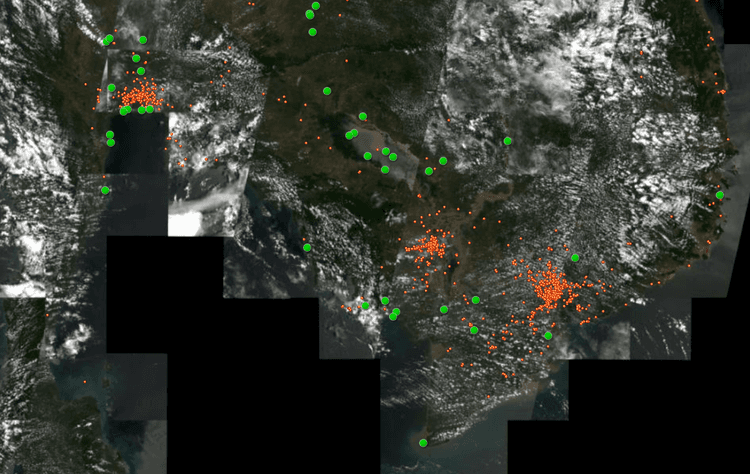 This map below shows WWF's key flyway locations (bird migration paths) as green dots, mapped against OS Hub facility data (red dots) in and around Bangkok, Phnom Penh and Ho Chi Minh.